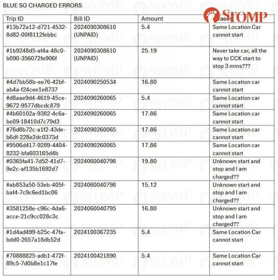 "I compiled a list of all suspicious trips and flagged it out to BlueSG, but it's been six months since I got a refund for these exorbitant charges.