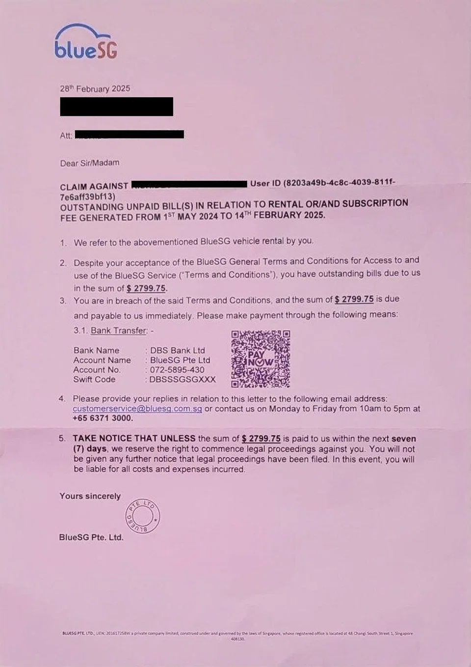 "We have also taken his feedback seriously and are factoring in his experience as a loyal BlueSG customer to help us improve our services," said the spokeswoman.