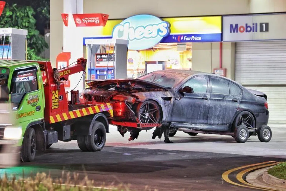 BMW catches fire at Sembawang petrol station, witness 'worried there would be explosion'