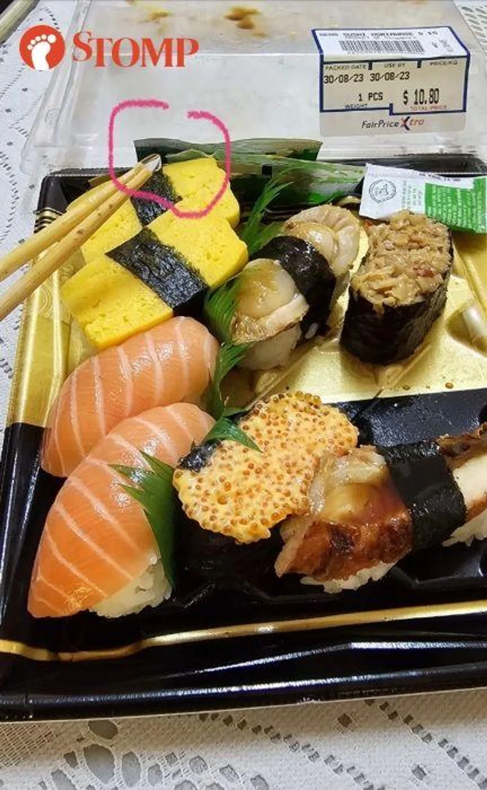 "I bought a packet of sushi for lunch on Aug 30 and while eating a piece, I found a piece of glass inside the sushi," recounted the Stomper.