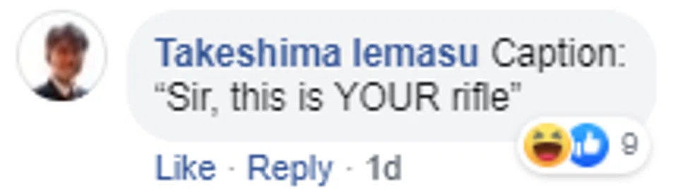 This other man in the background "knows what's about to happen" as the legend receives his rifle.