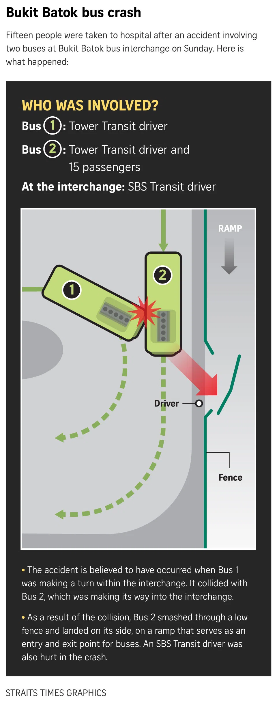 The spokesman said other passengers involved in the accident may reach the company on 1800-248-0950 or feedback@towertransit.sg, or visit its passenger service offices at Jurong East or Bukit Batok bus interchanges.