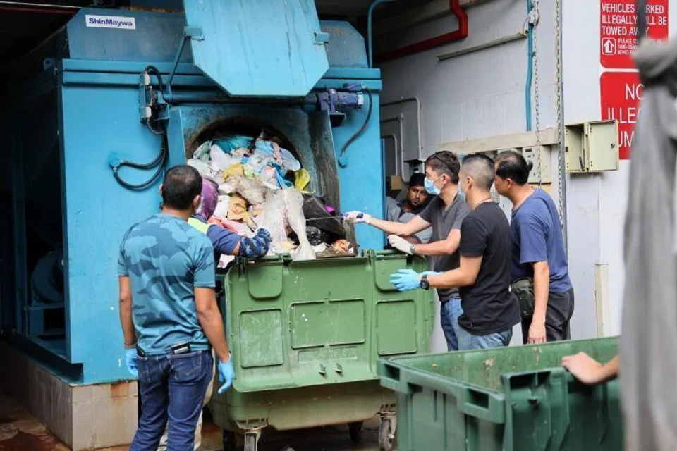 At about 2.15pm, plainclothes police officers were seen going through the rubbish at the block’s bin centre with a metal rod. A knife, believed to have been used in the incident, was seized, the police said.