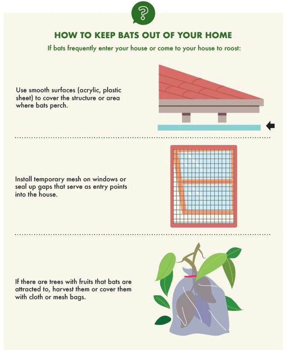 On the rare occasions when bats enter your premises, NParks has an advisory on what to do: