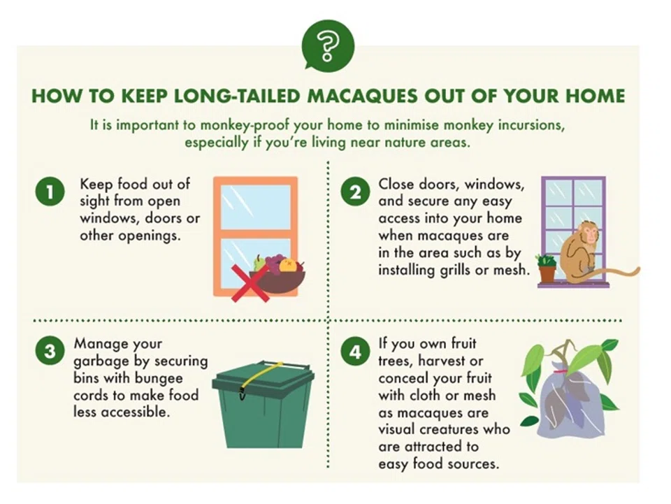 Here is how to keep long-tailed macaques out of your home, according to the NParks website.