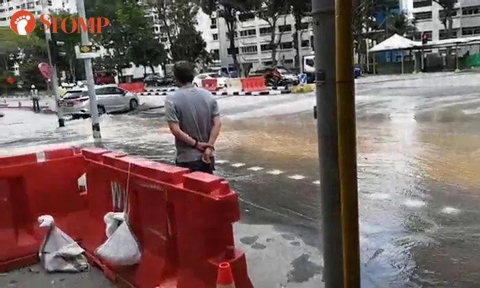 Stomper Danish was making a food delivery when he saw water gushing down South Woodlands Road on Monday afternoon (Apr 22).