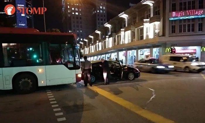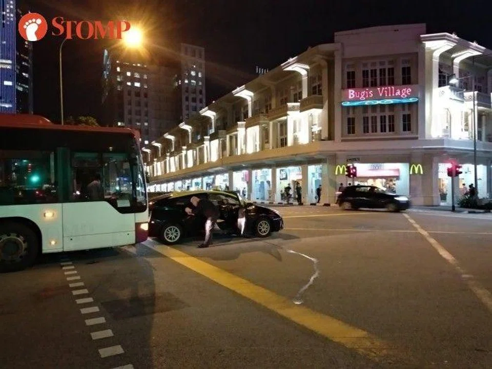 Stomper Gokul was walking by the area near Bugis Village when he saw an SBS Transit bus and a yellow-top taxi had stopped in the middle of the junction at about 7.30pm.