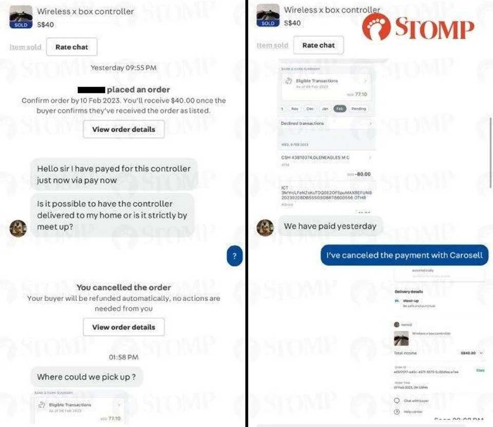 Stomper K, who was the seller, shared screenshots of his chat with the buyer, who placed an order for a $40 wireless Xbox controller and paid for it using PayNow on Feb 7.