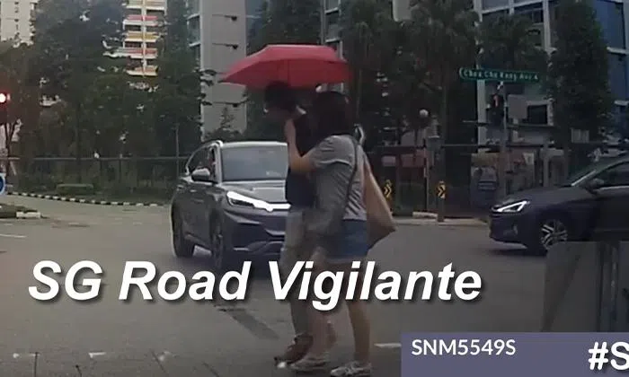 A car nearly collided with a car, a bus and pedestrians after running a red light at Choa Chu Kang Road.