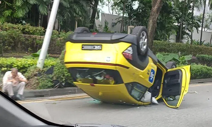 Cabby, 73, taken to hospital and assisting with investigations after taxi overturns at Sheares Ave