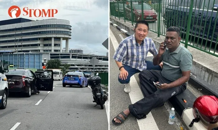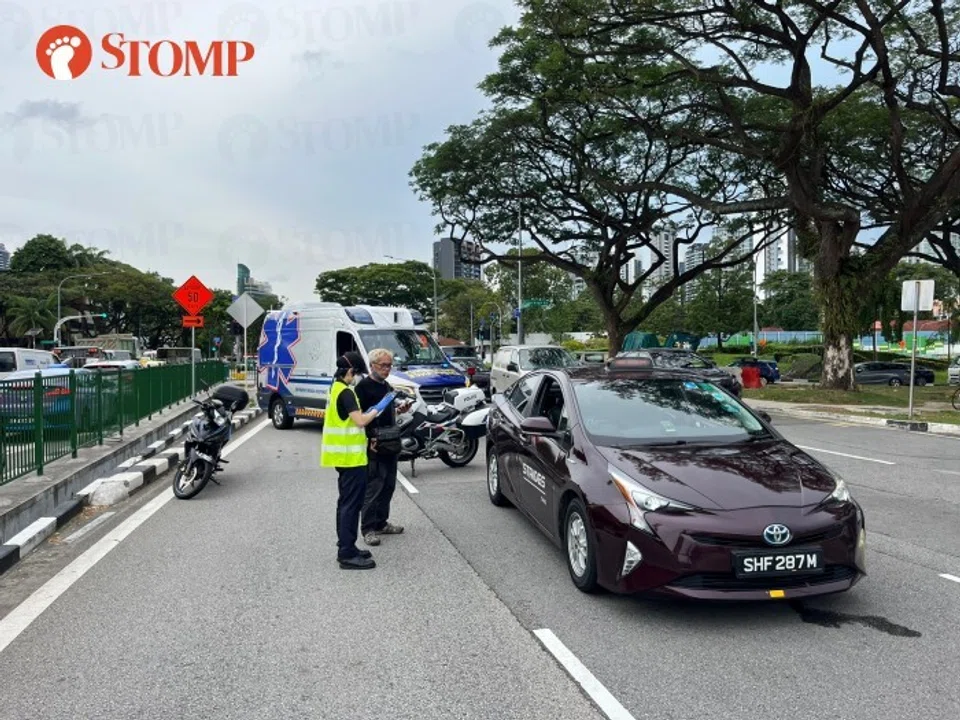 "I was driving along Bukit Timah Road about to turn right into the Central Expressway when I saw the motorcycle and SMRT taxi get into an accident," recounted Mr Sin, who is a cabby with ComfortDelgro.