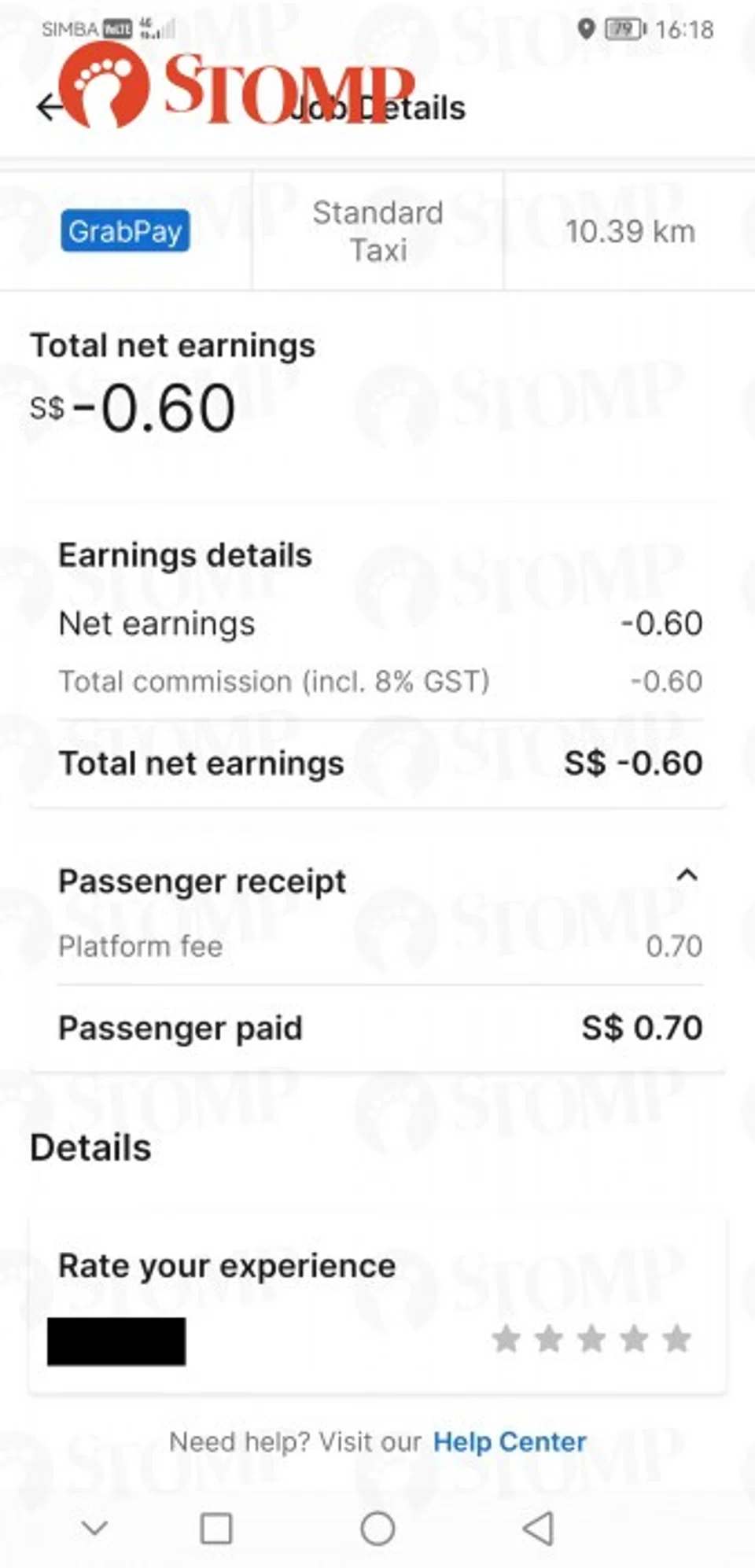 On top of not earning the $19.49 fare, he made a loss of 60 cents for the trip even though it was during peak hour and included electronic road pricing (ERP) charges.