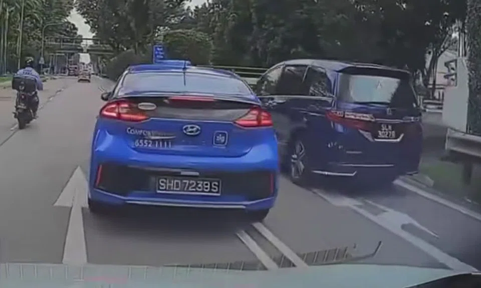 A video of the incident was shared on SG Road Vigilante's Facebook page and showed the taxi cutting across three lanes.