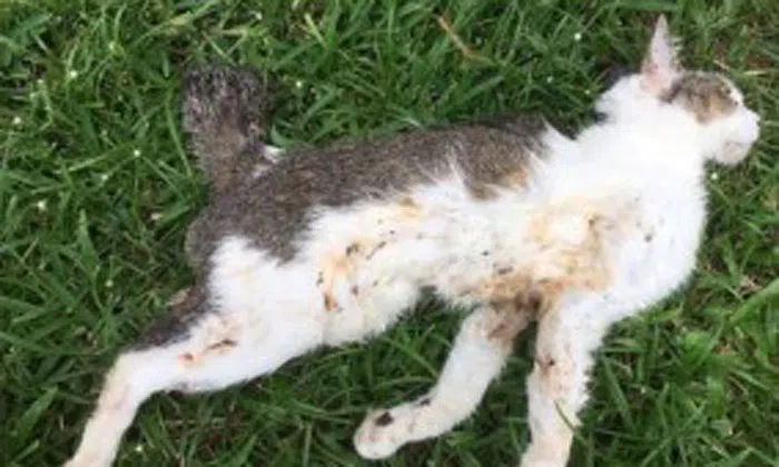 After conducting a post-mortem on the cat's carcass, it was revealed that the cat suffered an external traumatic incident (blunt force trauma mainly directed at the cranium of the cat), which caused its death.