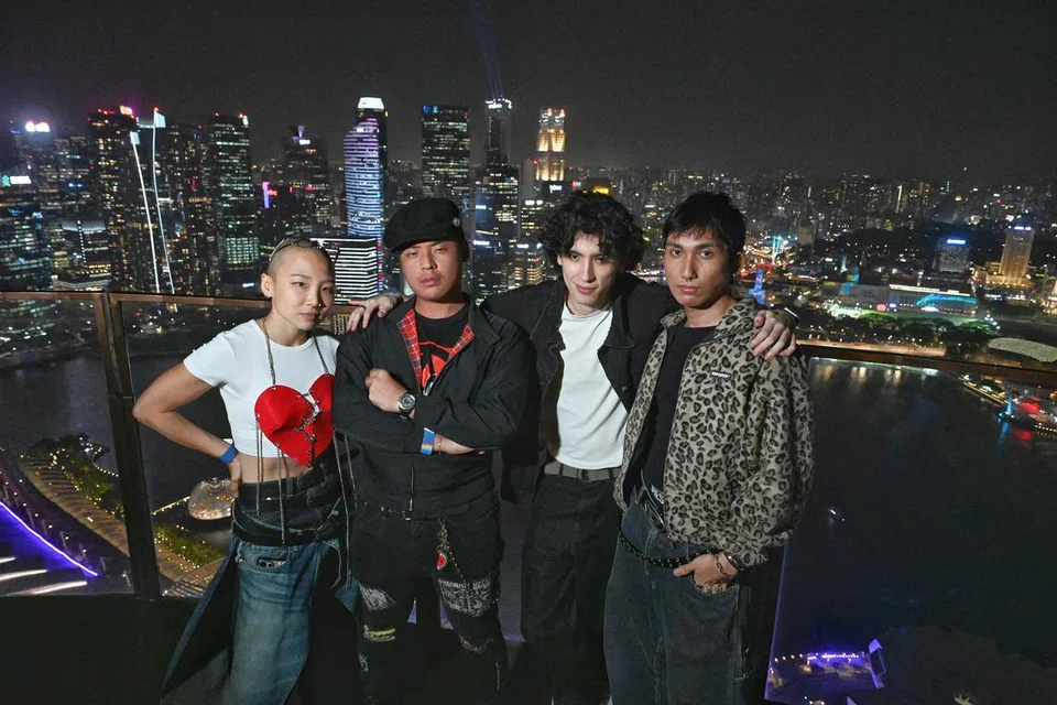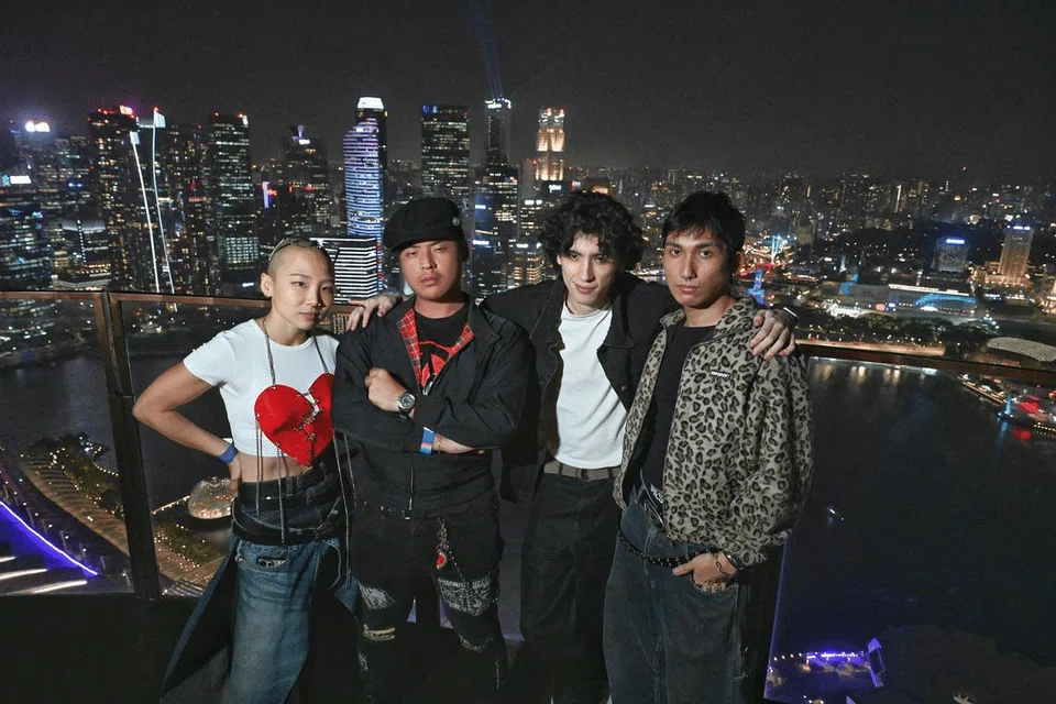 The local youth featured in the music video include (from left) multidisciplinary artist Aeropalmics, musician Tenzin Tsundu, model and cosplayer Akihiko Turner and polytechnic student Muhammad Faris Azamshah. ST PHOTO: DESMOND WEE