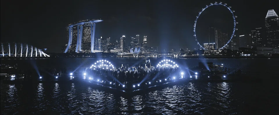The band performed on a floating stage in Marina Bay built for the music video.PHOTO: ANNA LEE