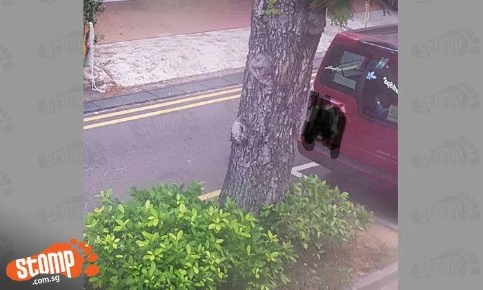 A Stomper sent Stomp this photo she took along East Coast Road apparently showing the face of a monkey protruding out of a tree trunk.