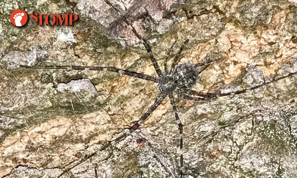 Stomper Lau Lup found the "scariest spider" he has ever seen at the bus stop in front of Yio Chu Kang Primary School in Hougang yesterday (Jun 16).