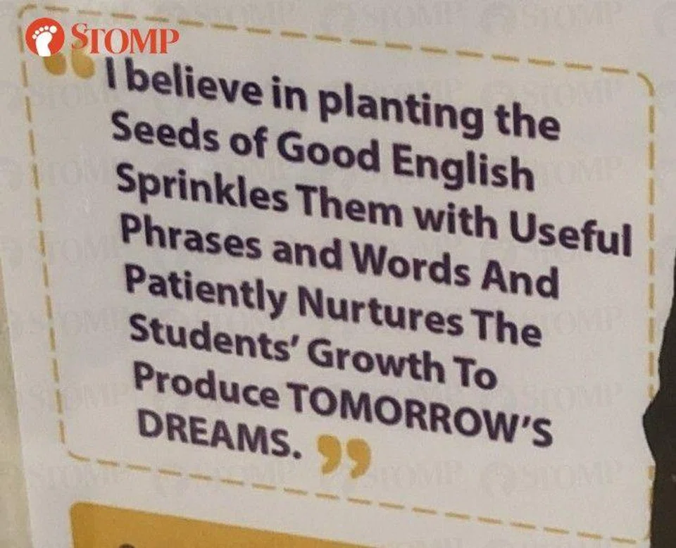 Stomper MO was horrified at the English used in a poster he saw at his son's tuition centre on Friday (Nov 1).