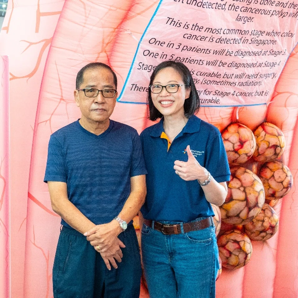 Mr Cheok recalled a nurse at National University Hospital (NUH) found him jovial and suggested that he share his experience with newly diagnosed patients to encourage them. He is now in the NCIS colorectal support group to teach others how to optimise their stoma bags.