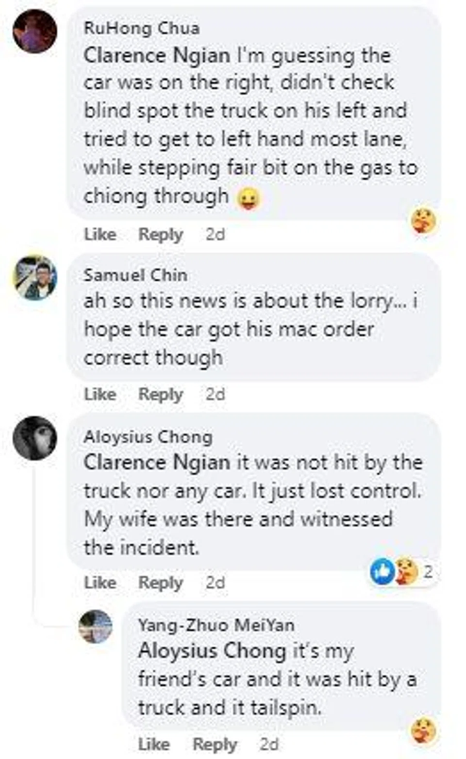 Others speculated on what had happened with some saying the car was hit by a truck and others claiming the car spun out of control.