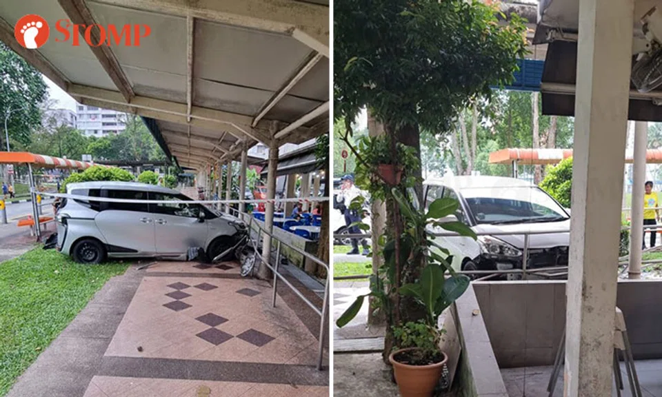Stomper Terry alerted Stomp to the incident and shared photos of a car that had crashed into a sheltered walkway near a bus stop along Woodlands Street 32.