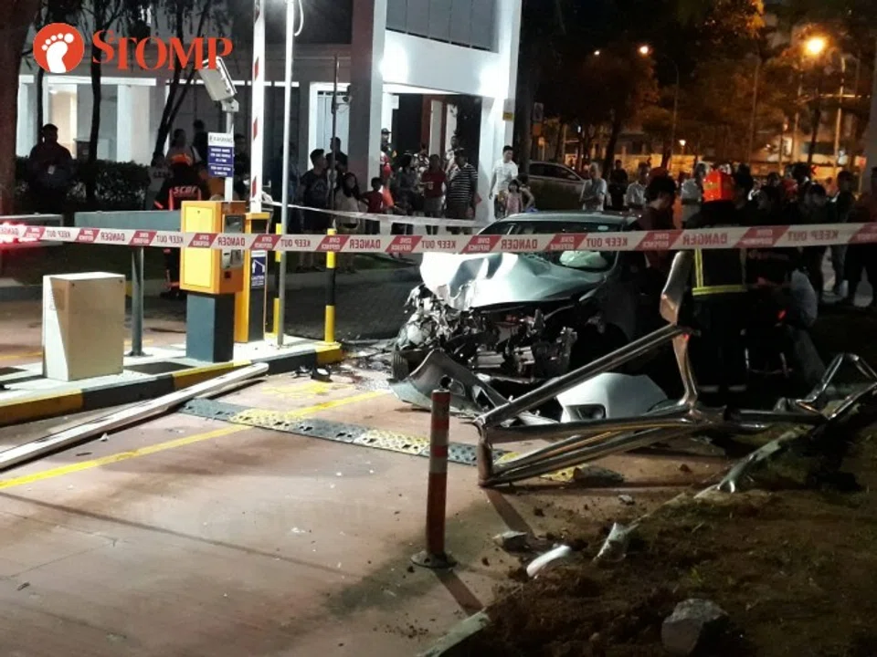Responding to queries by Stomp, the police and the Singapore Civil Defence Force (SCDF) said that they were alerted to an accident involving a car and a motorcycle at the carpark's entrance at 6.17pm.