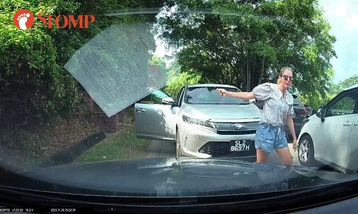 Ming told Stomp: "It is not right that she exhibited such dangerous and reckless behaviour on a busy Saturday afternoon in an area where there are lots of children having enrichment sports classes. As seen in the video, a parent and the kid had to squeeze in between her car and mine."