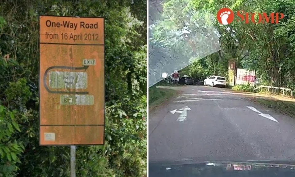 "There is a very prominent orange sign from the Singapore Land Authority stating that the entire road is one-way from April 16, 2012."