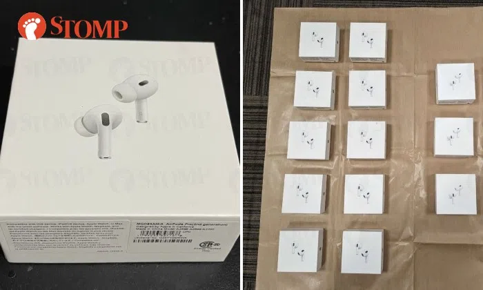 "Through follow-up investigations, officers from Bedok Police Division established the identities of the two men and arrested them. Eighteen boxes of counterfeit Apple AirPods and three mobile phones were seized as case exhibits."