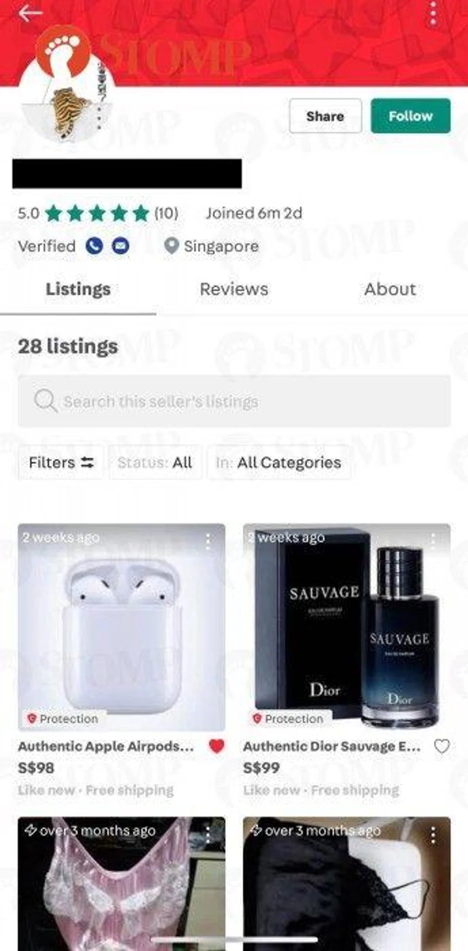 The Stomper added that she has reported the seller's account to Carousell.