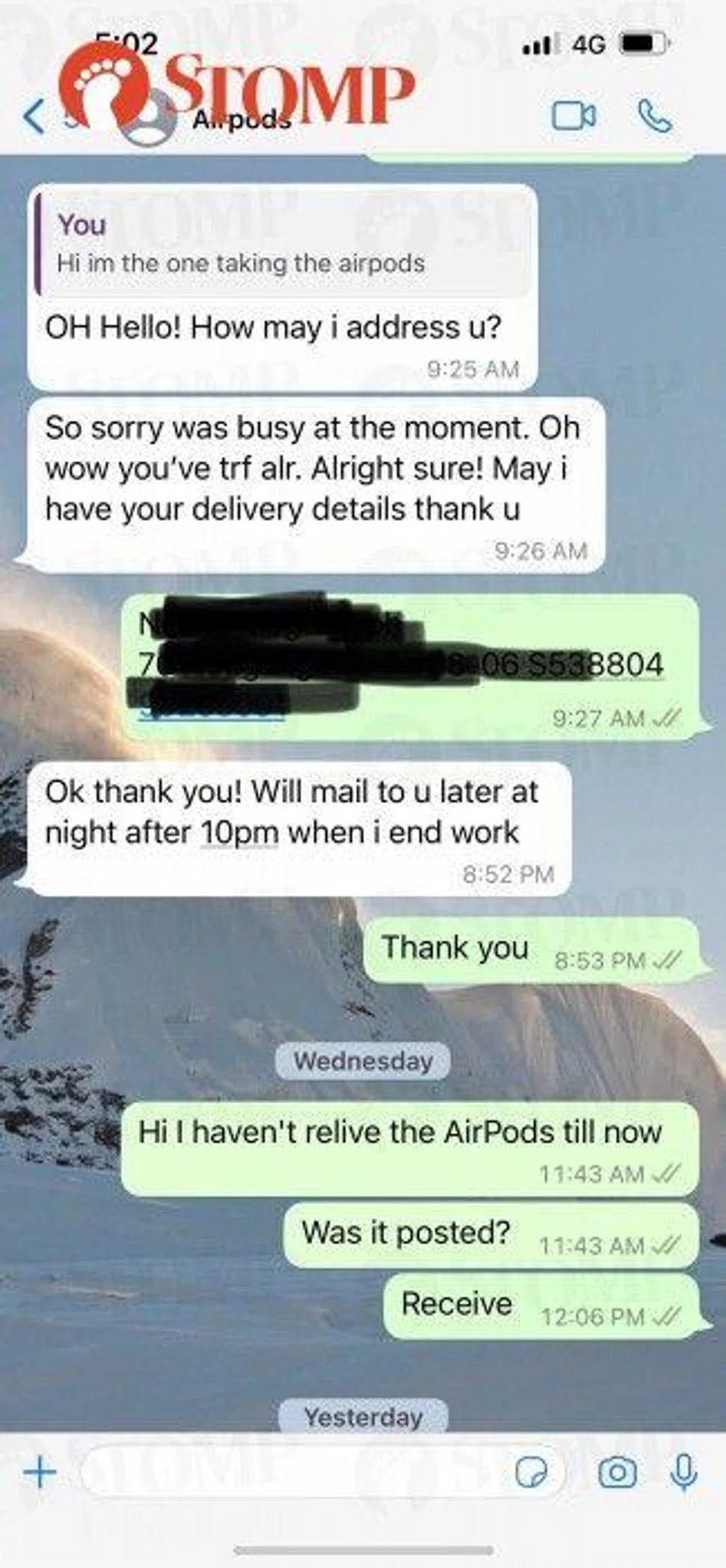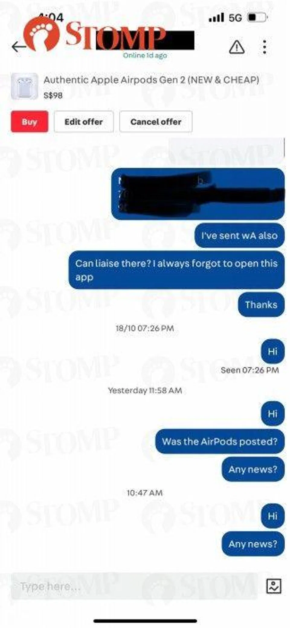Sensing something amiss, the Stomper followed up with the seller on Wednesday (Nov 9) after not receiving the item.