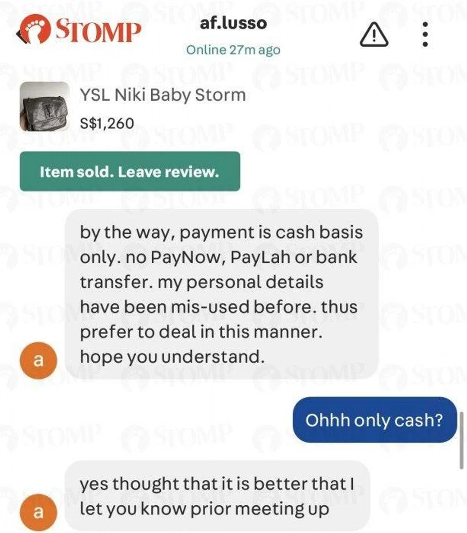 "I am sharing this with Stomp to create awareness of shopping for luxury bags on Carousell, especially with such scams going around.
