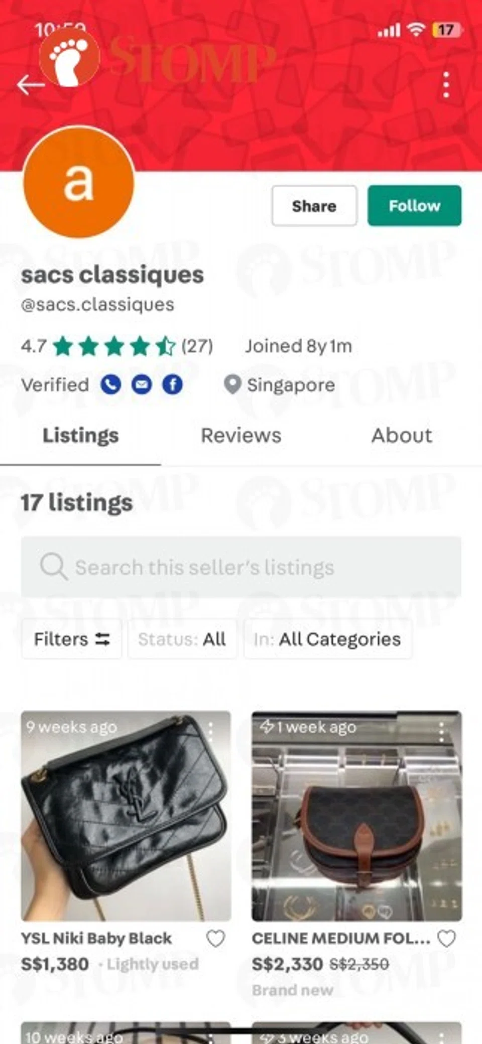The Stomper shared that after this Stomp report, the seller changed her username to @sacs.classiques.