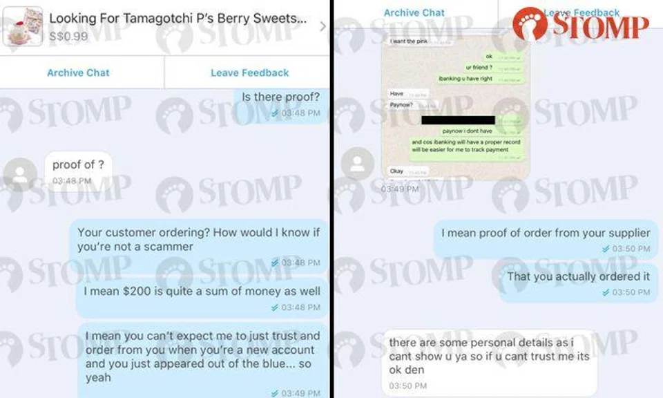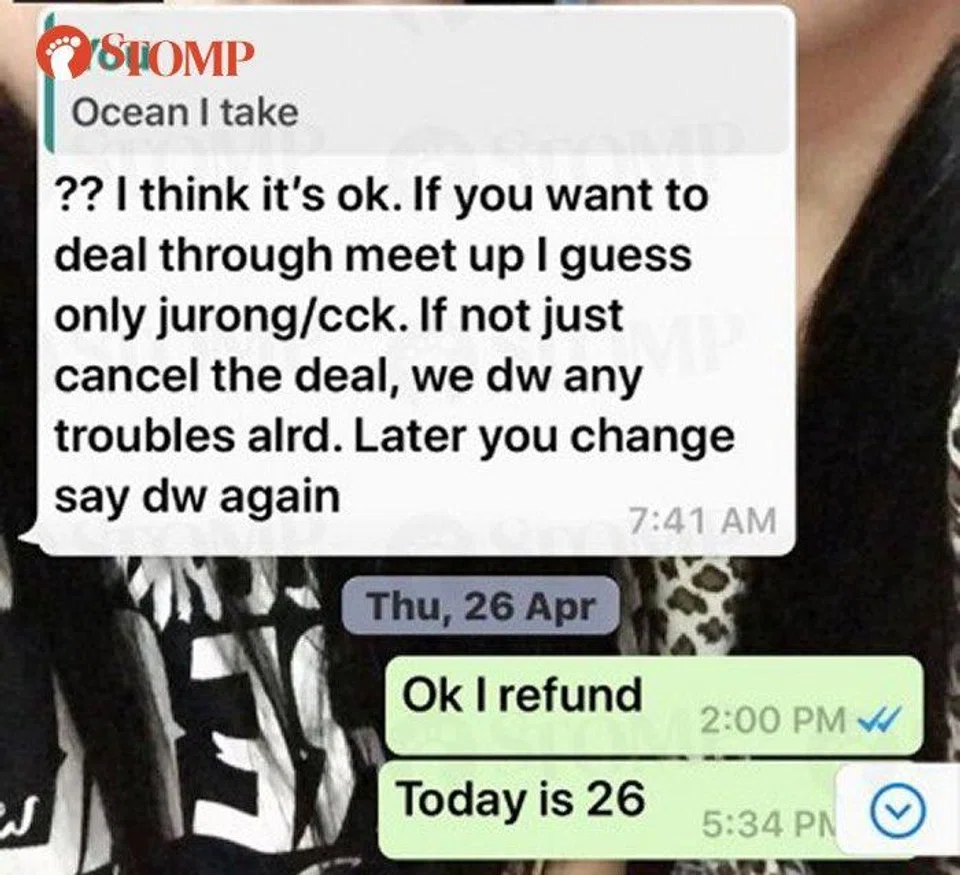 Y lamented to Stomp: "I have the right to a refund as a buyer. If you don't want to sell, then don't do all this to me.