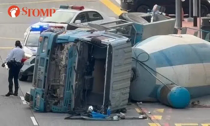 A Stomper shared a video showing the vehicle lying on its side without its front windshield. Traffic Police were at the scene.