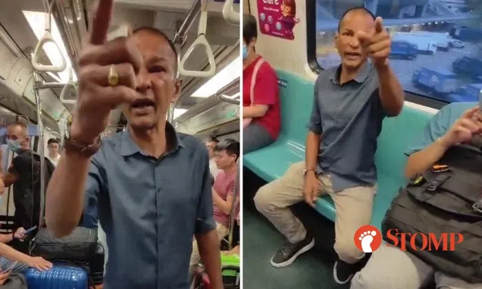 The man momentarily lost his balance as he returned to his seat before continuing to shout at the Stomper, who alighted at Bedok station.