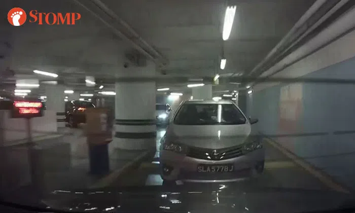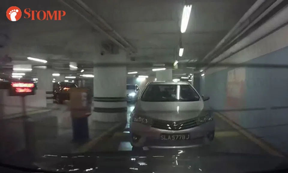 A car driver was caught on video tailgating another vehicle out of a carpark at Tampines 1 on Saturday afternoon (July 15).