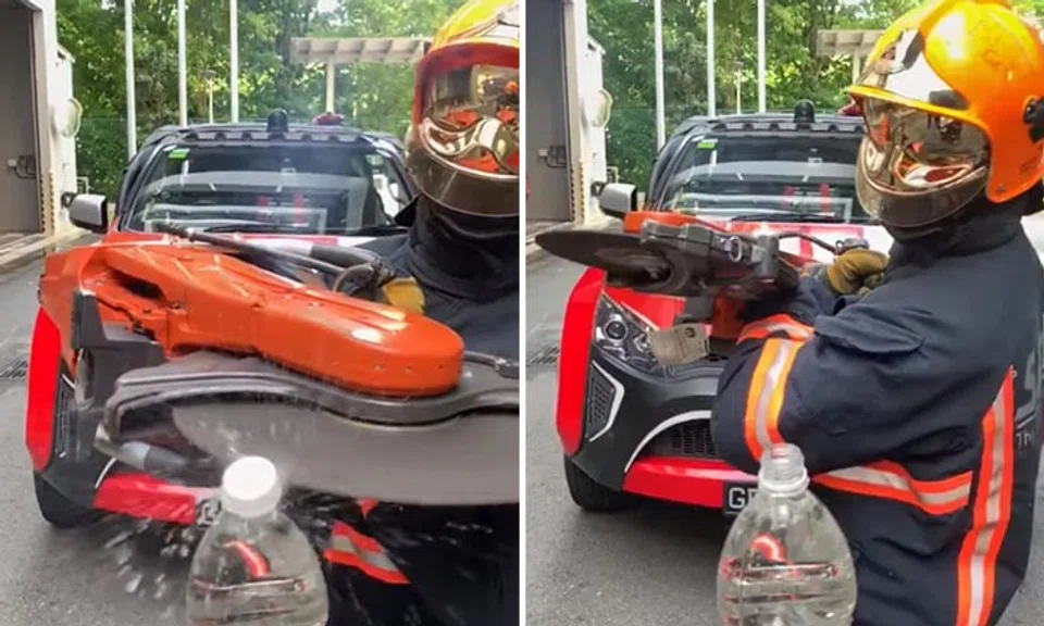 Check out SCDF's unique take on the bottle cap challenge -- using a power saw