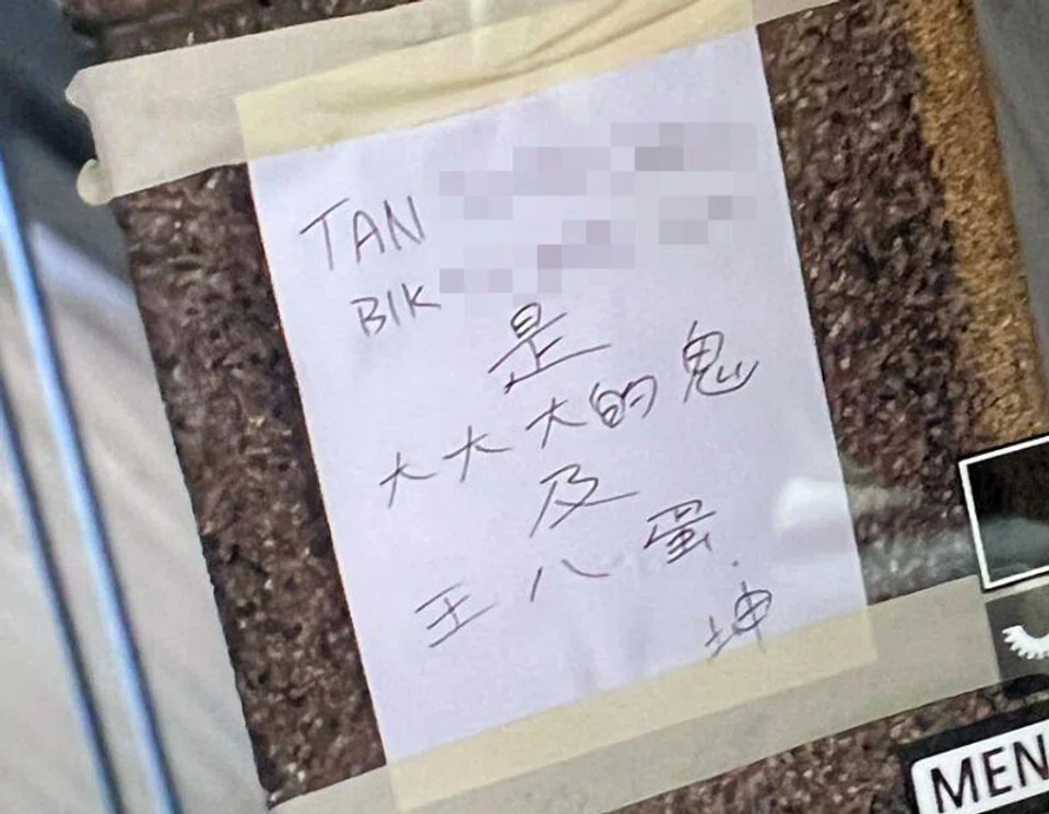 In addition to the note left on the car, vulgar notes with the same name and similar handwriting were also pasted on the pillars inside the market.