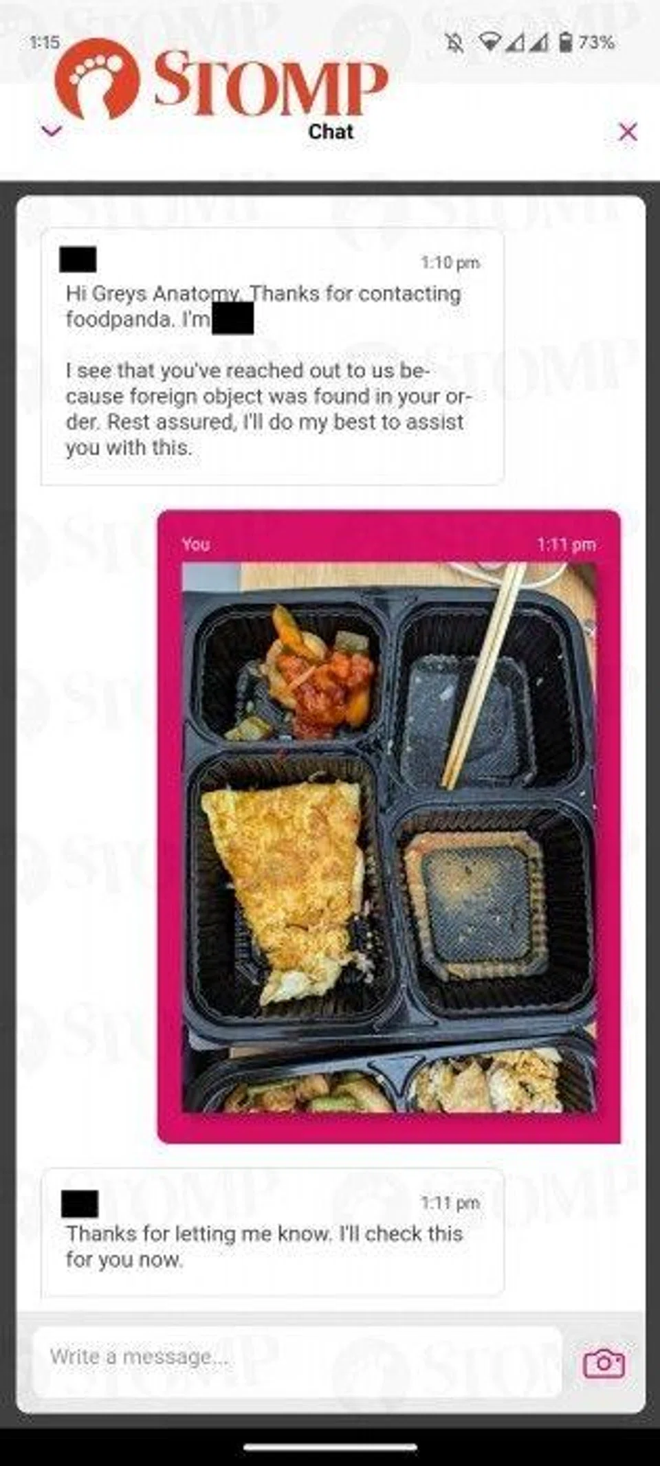 "I told Foodpanda about it but they weren't able to give a refund or anything."