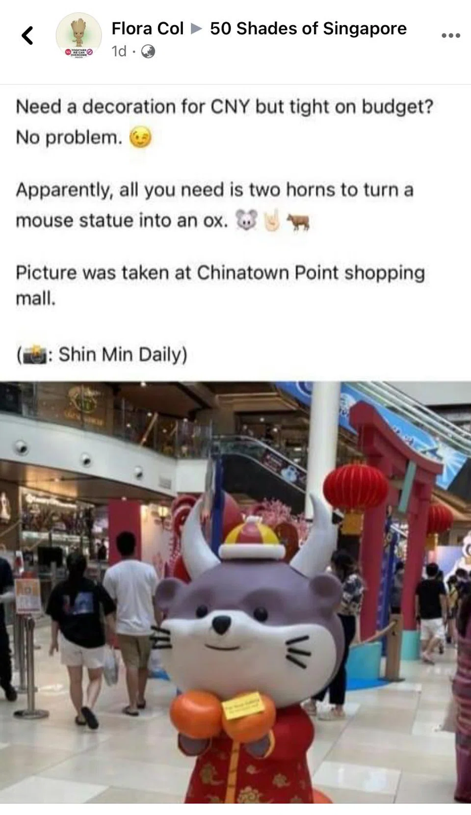 Chinatown Point debunks accusations that CNY mascot is rat 'recycled' to look like Ox
