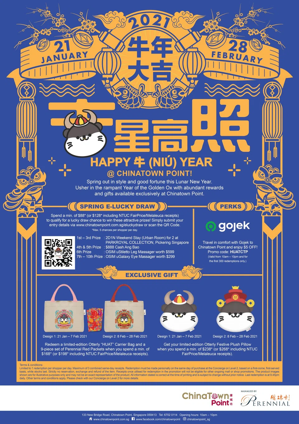 Shoppers also stand to redeem and win exclusive gifts as part of the Otterly Cute Chinese New Year @ Chinatown Point campaign from January 21 to February 28.