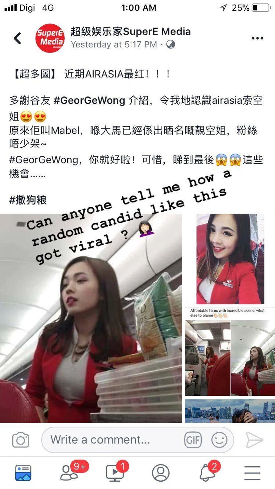 Facebook user GeorGe Wong recently posted two candid photos of an AirAsia stewardess on board a flight, along with a caption that said: "Affordable fares with incredible scene, what else to blame [sic]."