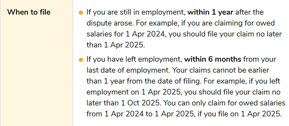He does not meet the criteria to lodge a salary claim with the Tripartite Alliance for Dispute Management (TADM), which requires a complaint to be filed within six months of leaving employment.