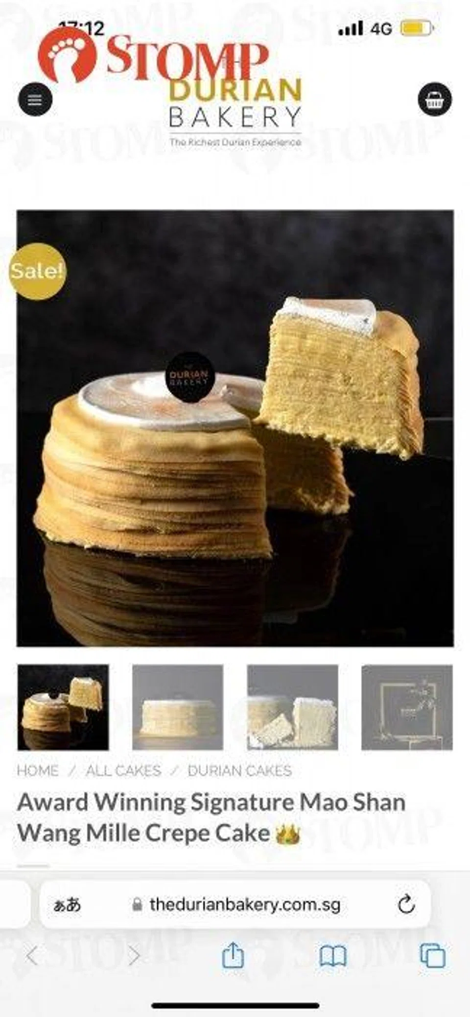 That was far from the case for Stomper Christine, who paid $98 for The Durian Bakery's Award Winning Signature Mao Shan Wang Mille Crepe Cake.