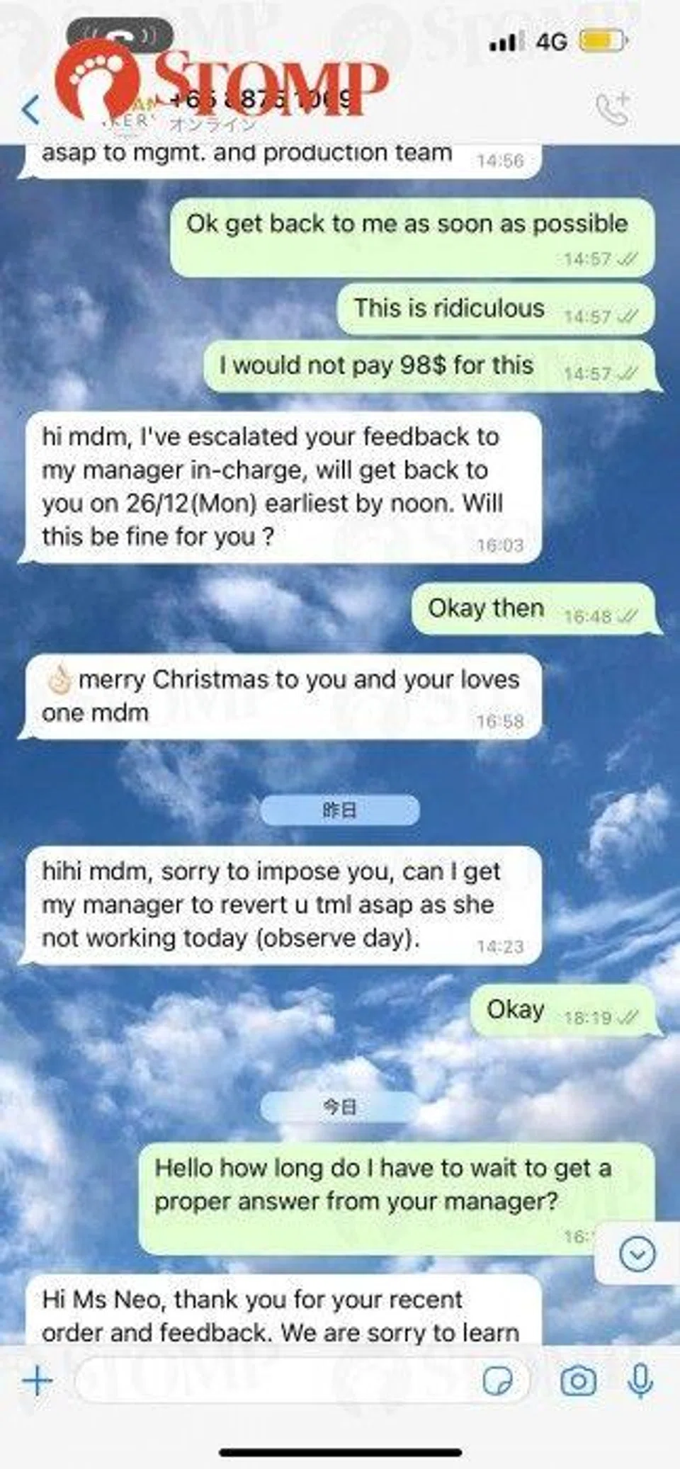 She shared screenshots of their conversation and added: "Their customer service is terrible. They dragged the issue all the way to December 27 and we patiently waited.