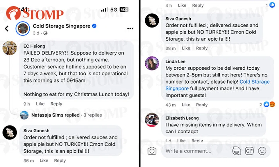 'Christmas ruined': Cold Storage apologises after failing to deliver food for customers' festivities