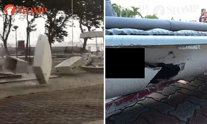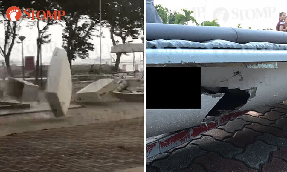 Videos of garbage bins and dinghies sent flying in the air by the strong winds at the National Sailing Centre in East Coast Park have been circulating on WhatsApp.