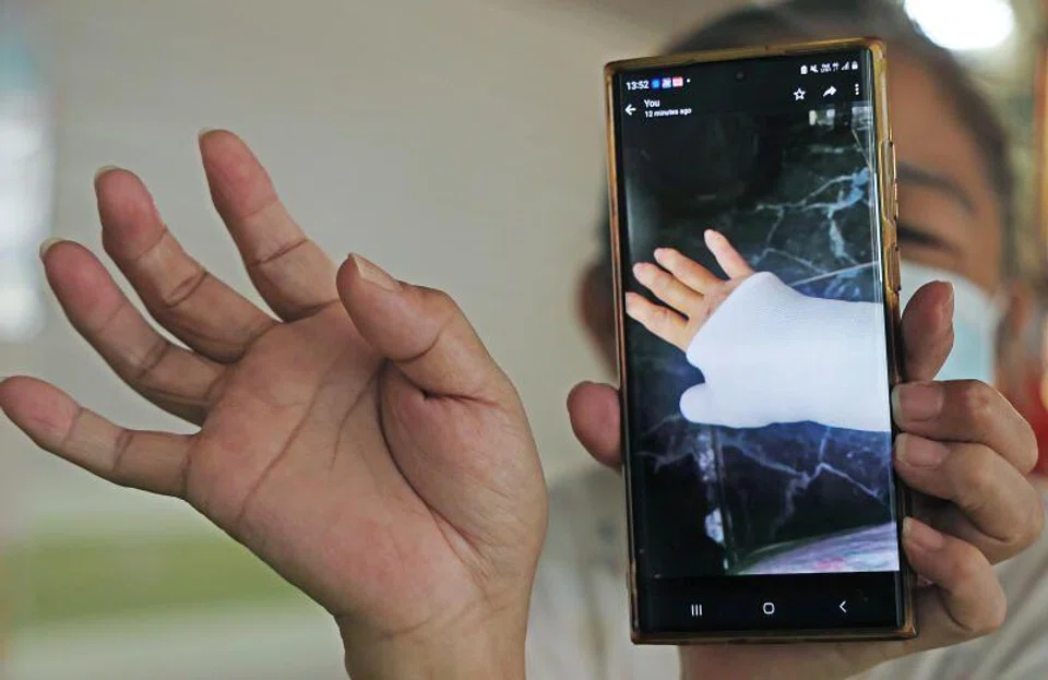 Ms Liang said she was told to rest, but she removed the cast on her own and went back to work as she has to fend for six children, five of whom are still studying.